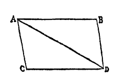 Et hinc patet compositio vis directæ AD ex viribus quibusvis obliquis AB & BD, & vicissim resolutio vis cujusvis directæ AD in obliquas quascunque AB & BD. Quæ quidem Compositio & resolutio abunde confirmatur ex Mechanica.