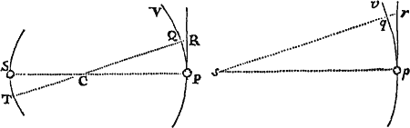Sit autem sphæroidis centrum S & semidiameter maxima SC: & vis, qua sphærois trahit corpus P, erit at vim, qua sphæra diametro AB descripta trahit idem corpus, ut ad . Et eodem computandi fundamento invenire licet vires segmentorum sphæroidis.